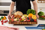 [DEEP JUICE GROOVE WITH BUILT-IN HANDLES]: Surrounded by a deep juice groove close to the edge, this large wood cutting board helps maximize the cutting area while catching meat, fruit, or vegetable juice from overflowing. Keep your work area clean and beautiful even during busy cooking times with this cutting board with juice groove.