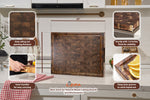 [KNIFE-FRIENDLY SURFACE, DURABLE END GRAIN]: The butcher block cutting board is the ideal surface for cutting and chopping without damaging your knives. Its end grain design not only adds to the board's aesthetic charm but also enhances durability, making it a long-lasting addition to your kitchen cutting boards collection.